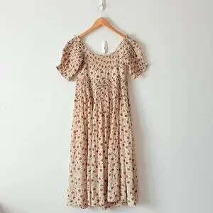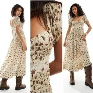 Free People Women's Bali Juniper Floral Print Ruffled Midi Dress Size 2