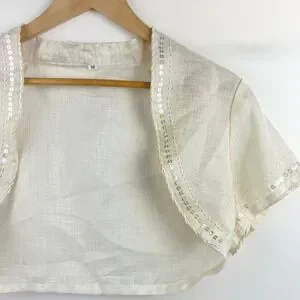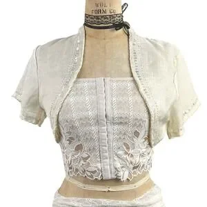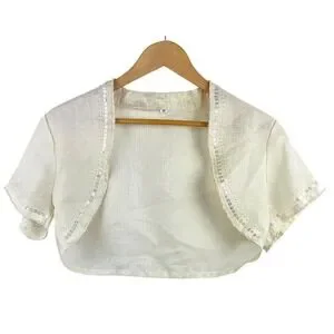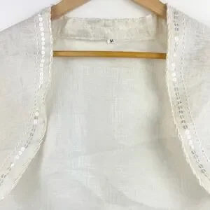 Coquette Womens M Sequin Trim Bolero Jacket Fairy Shrug Cream Angelic