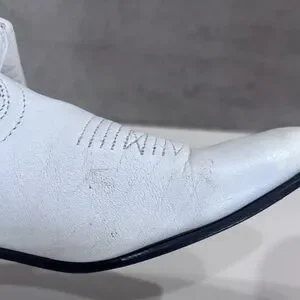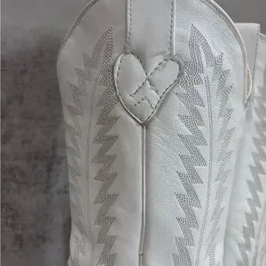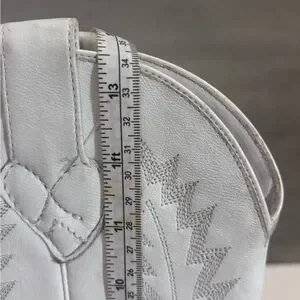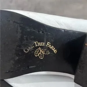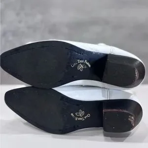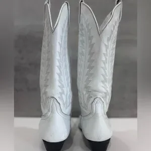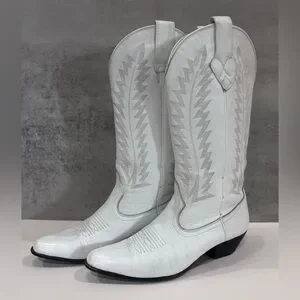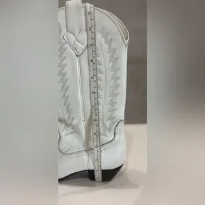 Oak Tree Farms White Leather Western Pull On Snip Toe Boots Size 6.5