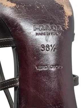 Prada Vintage Cutout Lattice Bondage Pointed Toe Kitten Heel Pump Brown 38.5 | 8