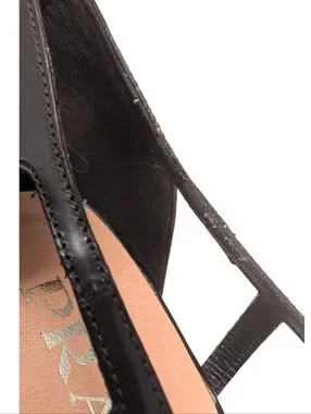 Classic Y2K Miuccia Prada design with cut-out leather detail, architectural squared pointed toe, and slim kitten heel, in deep chocolate brown leather. Distinctively late 90's / early 2000's Prada. Very good vintage condition noting wear to soles, light creasing, and minor thread trails at some edges of the shoe (seams are fully intact) -- as shown.