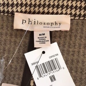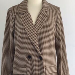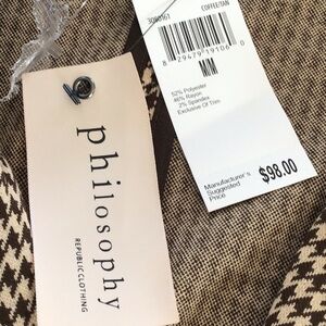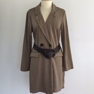 Philosophy brown houndstooth dbl breasted long blazer. M NWT belt not included