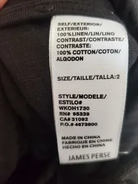 James Perse Black Linen Pants Size 2 Medium NWOT
