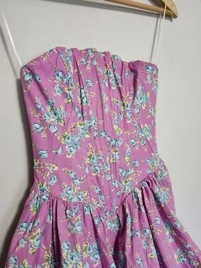 Zara NWT Bright floral pattern Strapless Bubble hem Boned corset style top Women's size S I