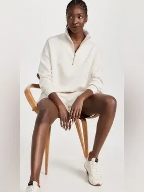 NWT Varley SET Hawley Half Zip Sweatshirt & Atrium High Rise Shorts 4.5 IVMF