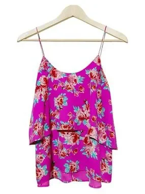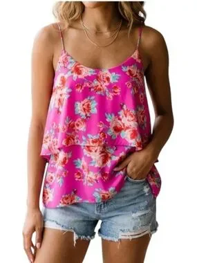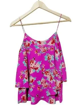 Paper Crane Pink Floral Rose Tiered Cami Spaghetti Strap Tank Top Size Medium M