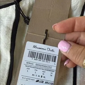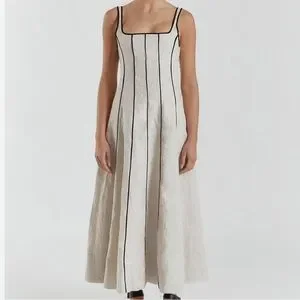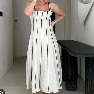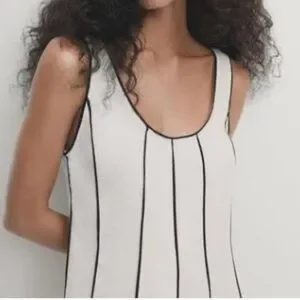 Massimo Dutti Women Linen Blend Two-Tone Strappy Dress in White Black Trim L Nwt