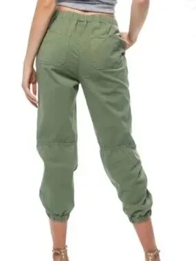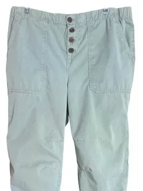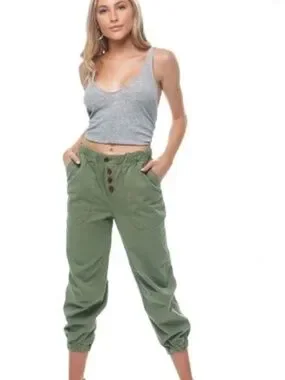 Free People Olive Green Button Front Jogger Pants Articulated Knee Size M