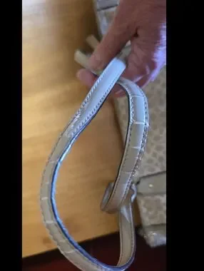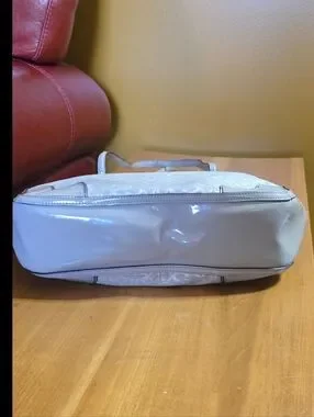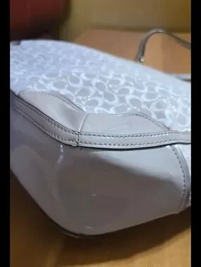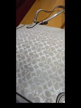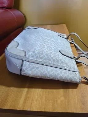 Coach Bag Poppy Metallic Beige Gold Signature C Patent Leather Canvas