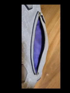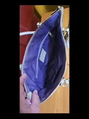 Straps are cracked and a small rust spot near zipper and zipper pull binding separation as shown in photos, otherwise good condition. Interior clean.