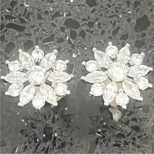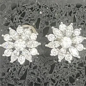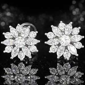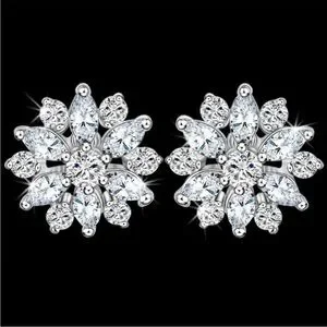 Marquise Round Cut Cz Diamond floral Silver Flower Cluster ladies Stud Earrings