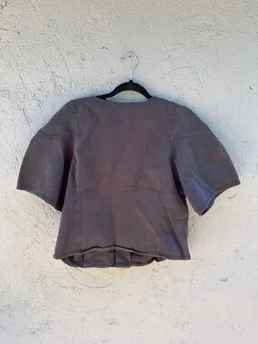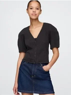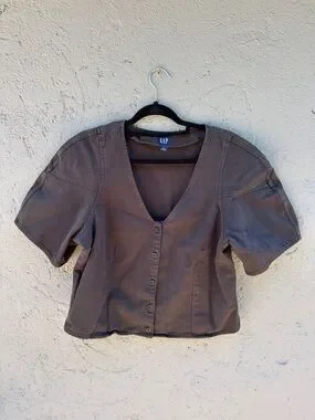 GAP Brown Button-Front V-Neck Short Sleeve Top