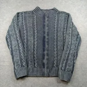 Carbon 2 Cobalt Sweater Mens 2XL Blue Linen Cotton Mock Neck Cable Knit Pullover