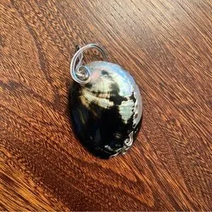 Beautiful handcrafted polished Abalone pendant. Wrapped in sterling silver wire. Would look great on a leather cord or cuff necklace.