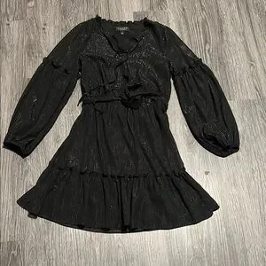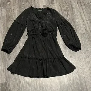 Laundry By Shelli Segal Black Cocktail Mini Dress with V-Neck Bishop Sleeves