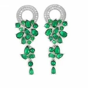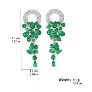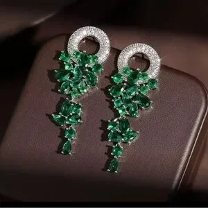 Elegant drop earrings with vibrant green stones. Silver accents add sparkle. Perfect for special occasions.