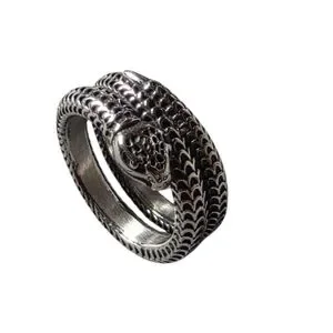 Elegant silver snake ring with intricate detailing. Perfect for adding a unique touch to any outfit.