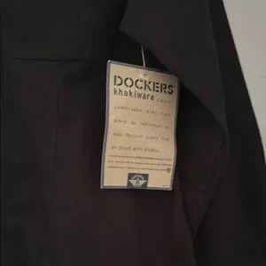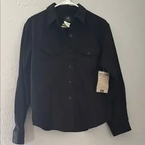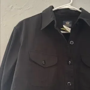 Stylish black utility jacket by Dockers. Features button-up front and chest pockets. Perfect for versatile wear.