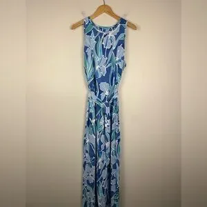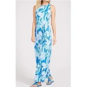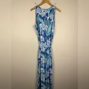 J. McLaughlin Charlene Blue Floral Tie Catalina Cloth Maxi Dress Women’s Ss XL