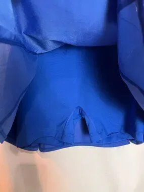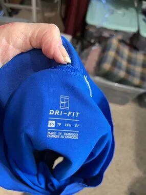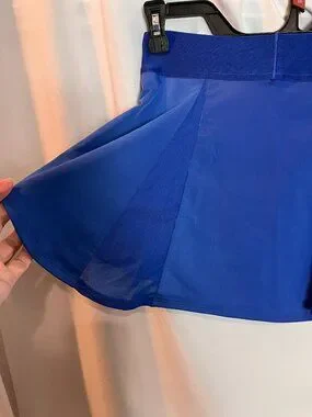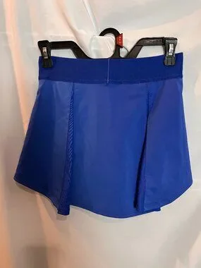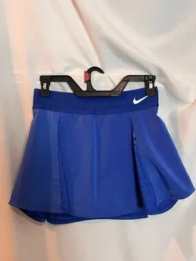 This Women's Blue Nike Dri-Fit Skort in size XS is a versatile activewear piece perfect for tennis or other athletic activities. Made from polyester blended fabric, this solid blue skort features a pull-on closure and a short skirt length. The machine washable garment is ideal for summer and spring seasons, offering both style and functionality for active women looking for a comfortable and stylish option for their workouts.