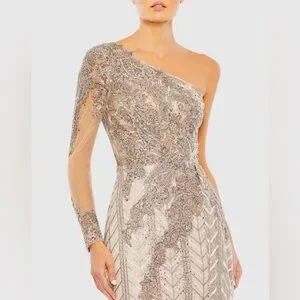 NWT $898 MAC DUGGAL Neutral Embellished One Shoulder A Line Gown DRESS 20401