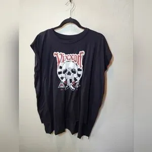 This black t-shirt features a bold skull design, perfect for kids who love edgy style. Comfortable and stylish for everyday wear. worn 1 time