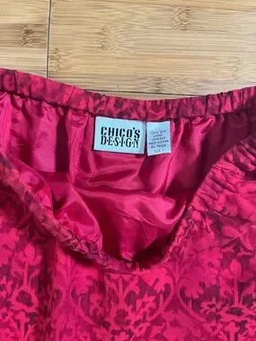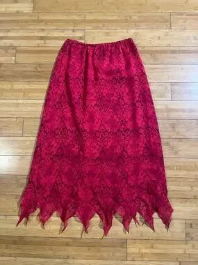 Y2K Chico's Red Damask Asymmetrical Point-Hem Flame Maxi Silk Skirt Whimsigoth