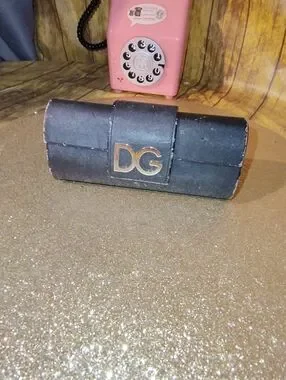 Structured black eyeglass case featuring a prominent gold DG logo on front. Sleek, classic silhouette. Soft interior protection. Great for storing sunglasses or glasses.