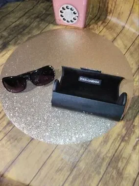 Vintage DG Black Eyewear And Case with Gold Logo.
