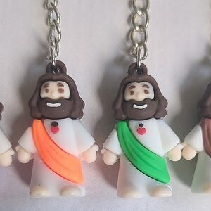 Keychain of Jesus wearing a robe. Each Jesus is a little over an inch tall.
