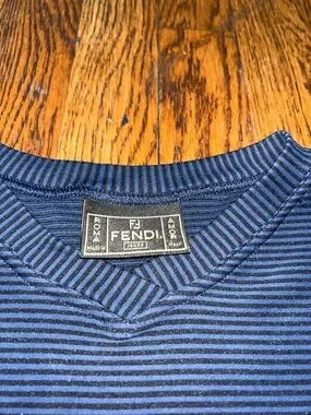 Vintage Fendi Jeans Ribbed Knit Top Made in Italy Navy Minimalist Y2K
