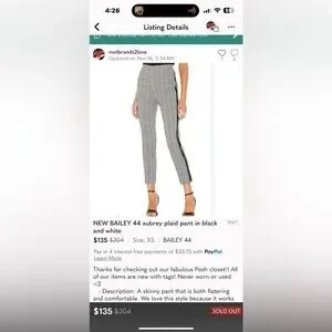 BAILEY 44 aubrey houndstooth plaid tuxedo pant in black and white size XS