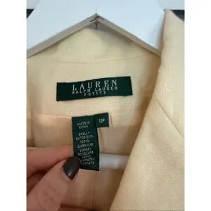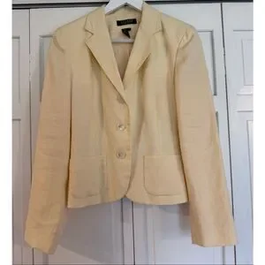 Lauren Ralph Lauren 100% linen butter yellow 3 button blazer 10 petite
