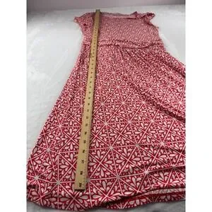 Boden Amelie Print Fit Flare Jersey Dress Women's 10R Red Casual Short Sleeve