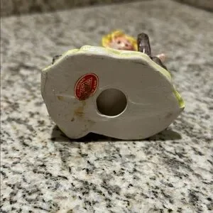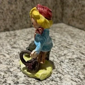 Vintage porcelain hand-painted figurine featuring a little boy cutting wood.