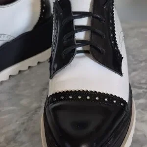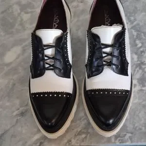 Sixtyseven Platform Wing Tipped Leather Oxford Pointed Toe, Black White Size 9