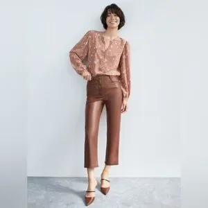 NWT Wilfred Pants Melina Crop Cognac Brown Faux Leather Sz. 8