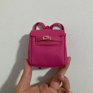 Mini Hot Pink with Gold Hardware Turnlock Backpack Bag Charm Keychain Two Strap
