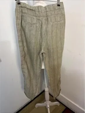 By Anthropologie Pants Womens XSmall Green Stripe 100% Linen Pull On Ankle Crop