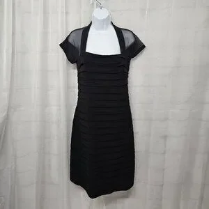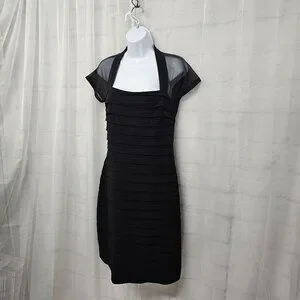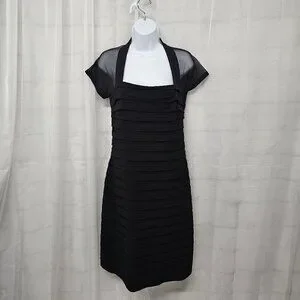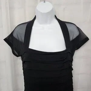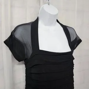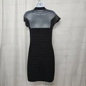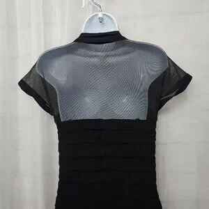 Maggy London Black Sheer Mesh Pleated Cocktail Dress Party Bodycon 8