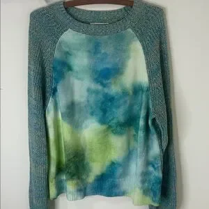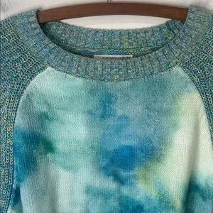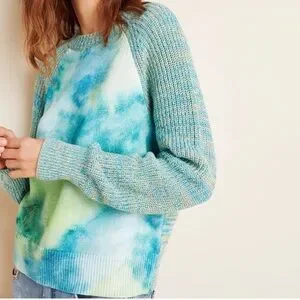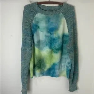 ANTHROPOLOGIE Blue Watercolor Tie-Dye Sweater Size Large