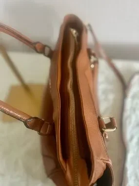 Gorgeous Prada Convertible shoulder bag with strap. Beautiful cognac pebble leather with gold buckles.