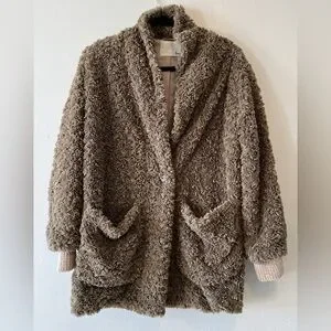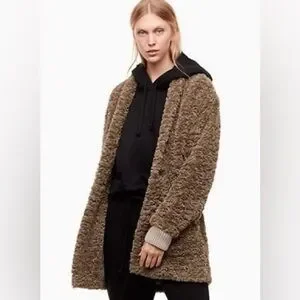 Aritzia Wilfred Free Grete jacket Size XXS Cozy Brown Teddy Coat Casual Fall