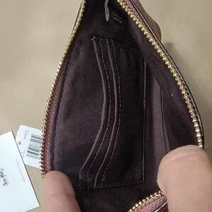 Coach Meadow Rose Pebbled Leather Corner Zip Wristlet NEW with Tag