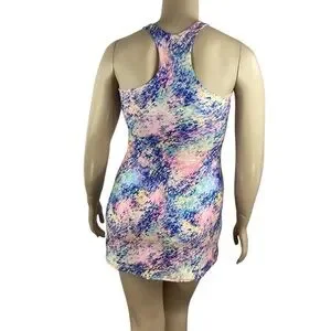 DSG Racerback Athletic Tank Dress Multicolor Abstract Print Size L