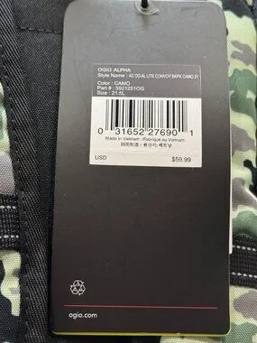 OGIO Alpha Lite Convoy Backpack 21.5 Liter Black Camo Daybag Gym MOD Webbing NWT