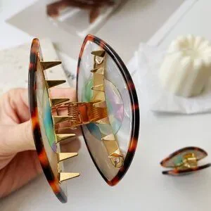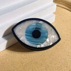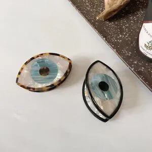 Features: Eye-catching claw clip with a striking blue evil eye design, perfect for adding a pop of color and personality. Non-slip grip keeps your hairstyle secure all day. Made from sturdy plastic and fabric for durability.