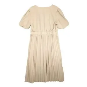 Pretty Garden Women's XL Beige Pleated Wrap Maxi Dress Short Puff Sleeves V-Neck
