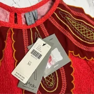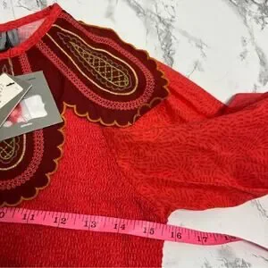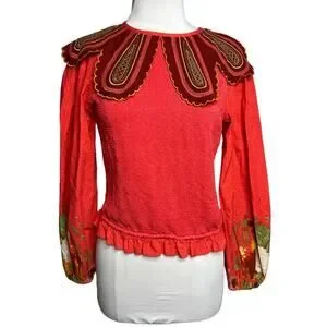 NWT Anthropologie Aliyana Collared Stretch Top Bl-nk Smocked SZ XS floral