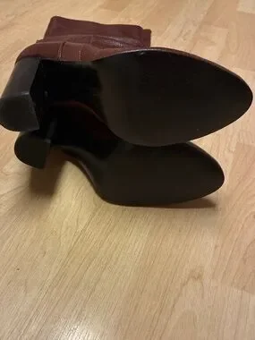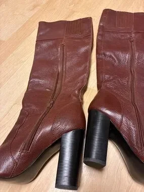 Size 8. EUC Brown inner zipper heel height approximately 4In. Leather boots elastic on calf boot any questions please feel to ask. Offers are welcome